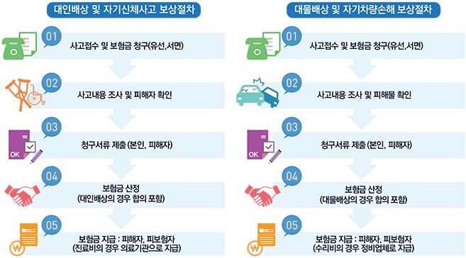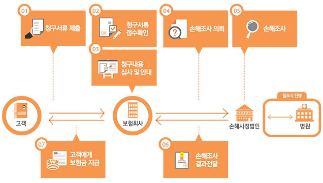 손해사정 및 사고조사(필요시) | • 자세한 조사가 필요하다고 판단 시 보험회사가 선임한 손해사정인이 보험금 또는 손해액 산정 |
